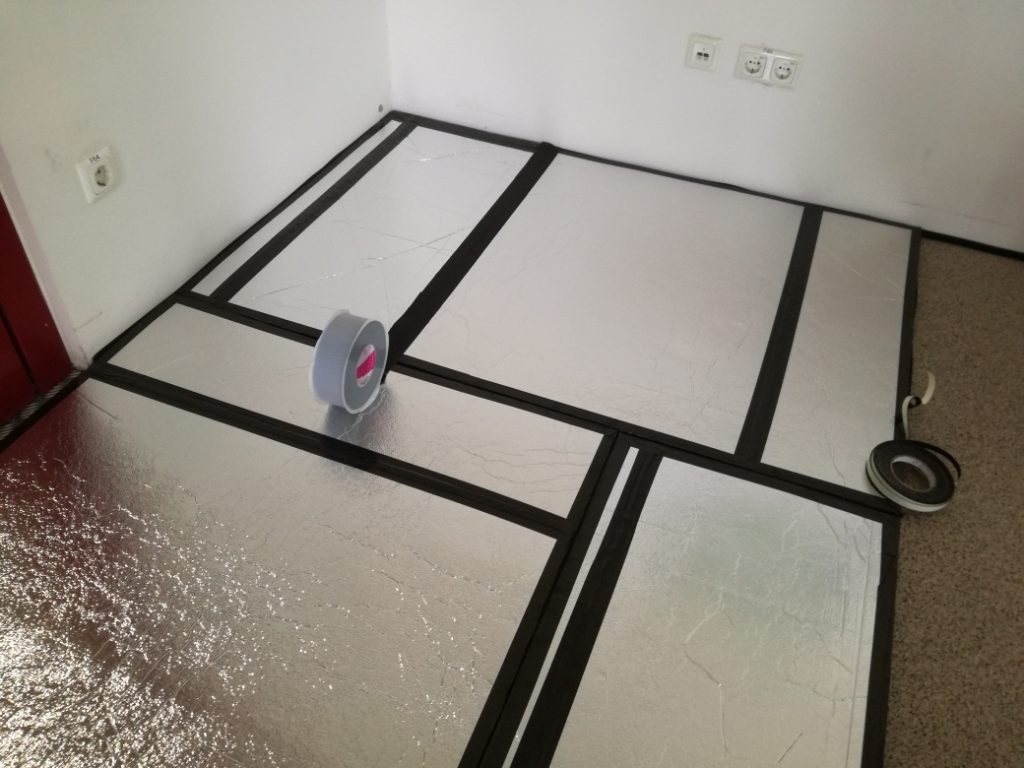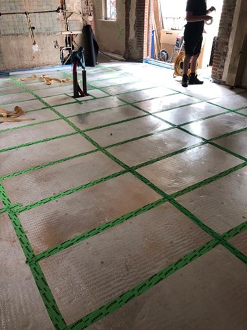 Het uitvullen van kieren en randen kan met drukvaste PIR – XPS of bijvoorbeeld (stroken van de) Bluedec deken.