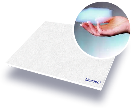 De grootste voordelen van ons dunne basismateriaal Bluedec: extreem hoge thermische isolatiewaarde, flexibel, makkelijk verwerkbaar, druk- en stootvast, waterafstotend, dampdoorlatend en brandwerend.
